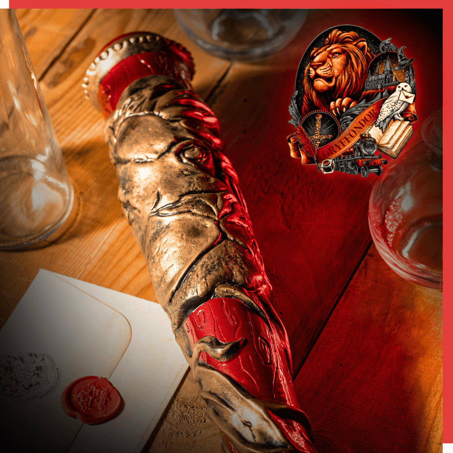 Incarnez la bravoure de Gryffondor avec cette batte sculptée à la main. Inspirée par les héros comme Harry Potter, chaque détail, du rouge éclatant aux emblèmes de lion, évoque courage et audace. Une véritable pièce de collection pour les vrais courageux.