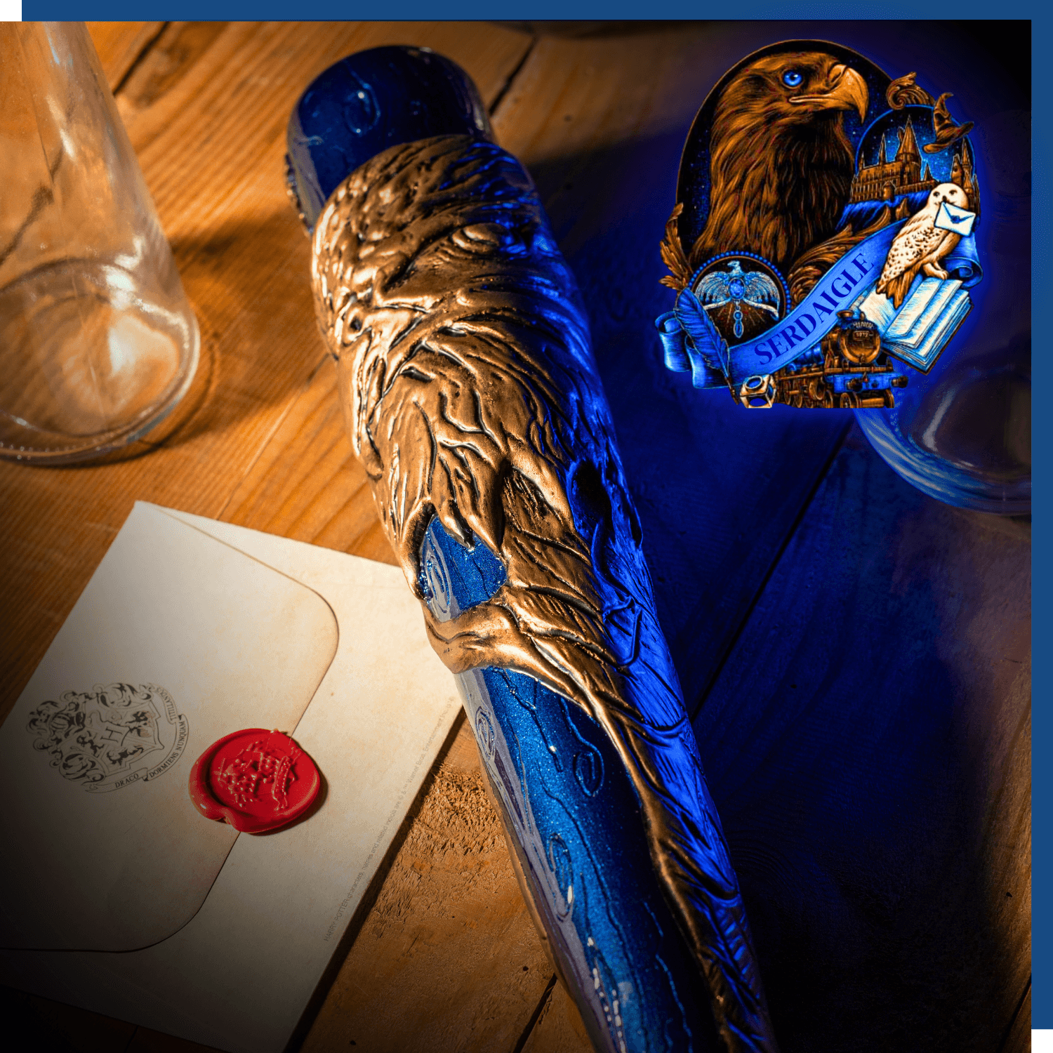 Chacune des quattre battes disponible sont sculptées à la main par l'artiste Maart, capturant l'esprit et les couleurs de chaque maison de Poudlard.